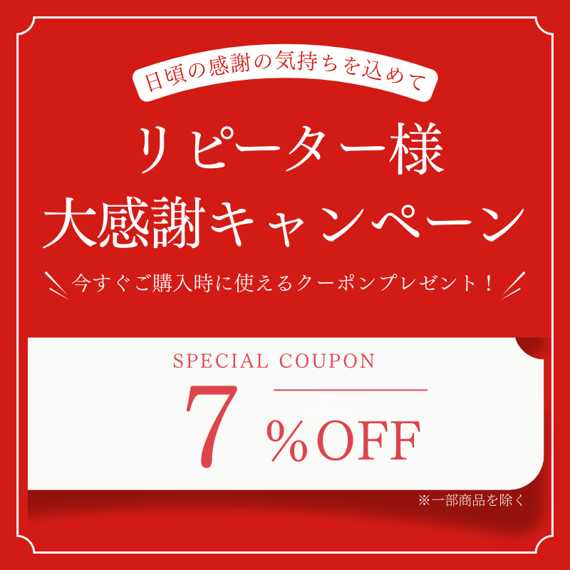 【リピーター様限定】7%OFFクーポンプレゼント!