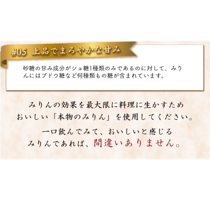 もち米を丁寧に醸造して造った有機三州味醂は、砂糖にはない上品でまろやかな甘さが特徴で、しかも舌に甘さが残りません。