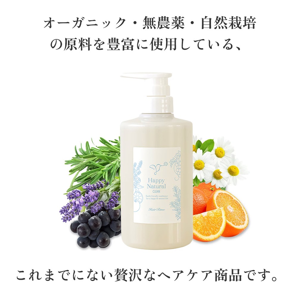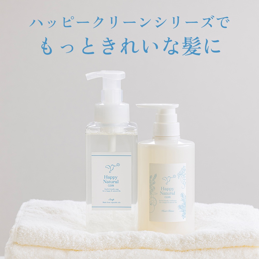 ハッピークリーンシリーズは、オーガニック・無農薬・自然栽培の原料を豊富に使用している、これまでにない贅沢な全身用シャンプー、ヘアケア商品です。
