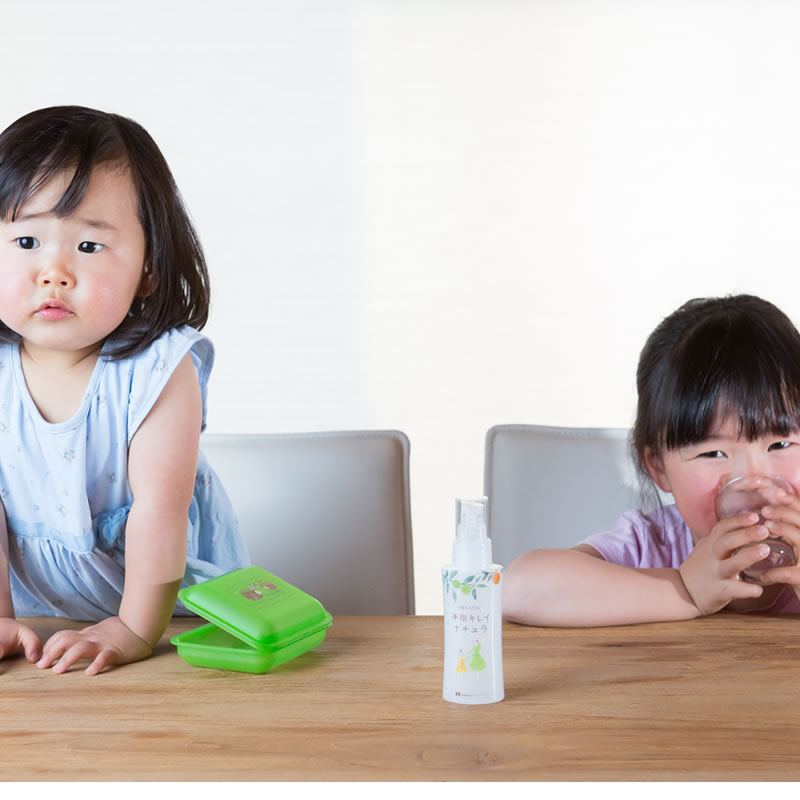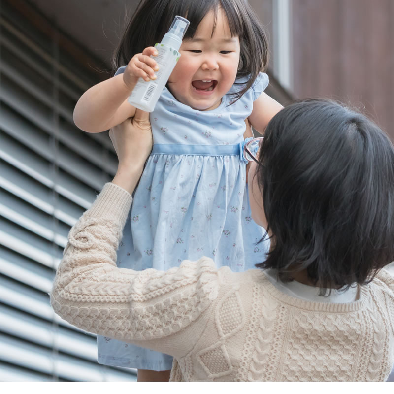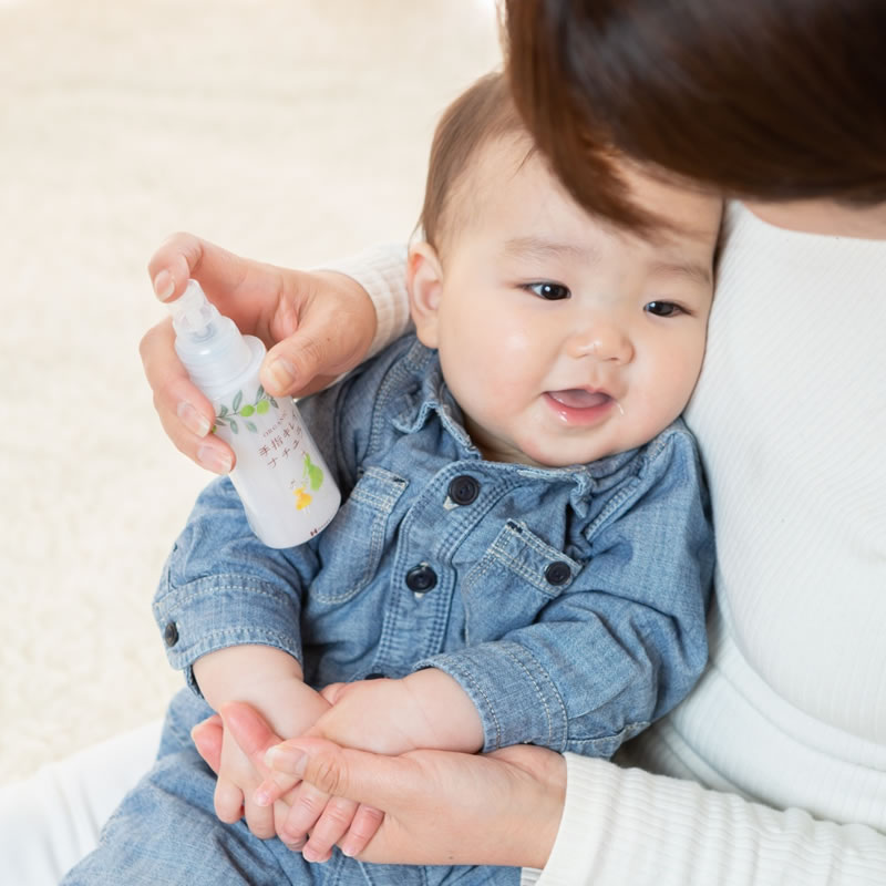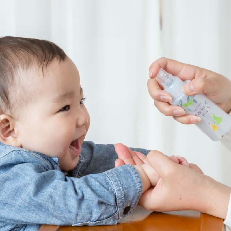 外出時の赤ちゃんやお子さまにもおすすめ、手指のオーガニック衛生洗浄スプレー