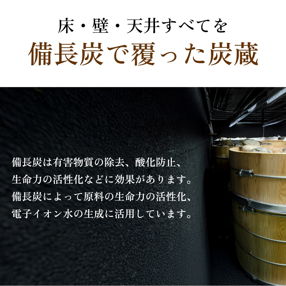 「備長炭」と「電子イオン水」を用いた製法で不純物を中和・除去することで、