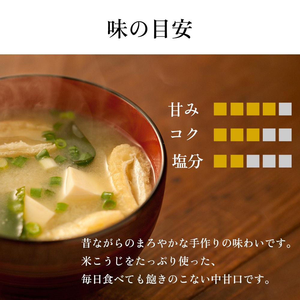 米こうじをたっぷり使った、毎日食べても飽きのこない中甘口。