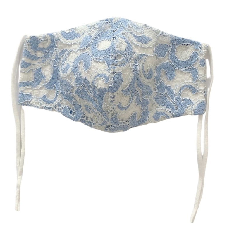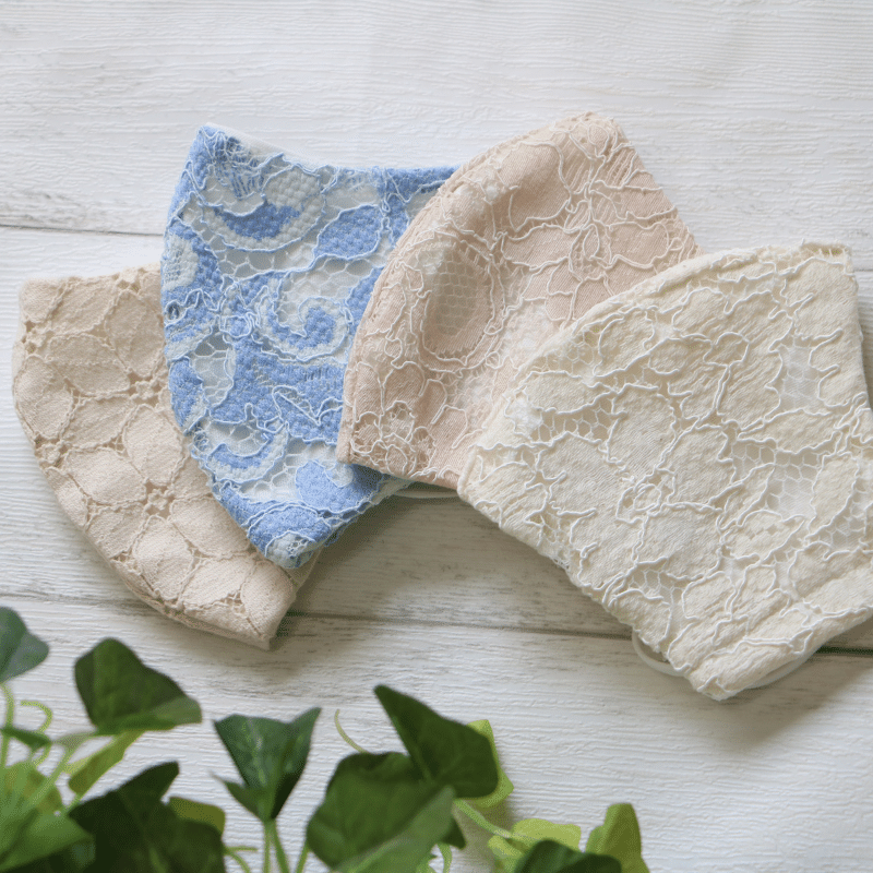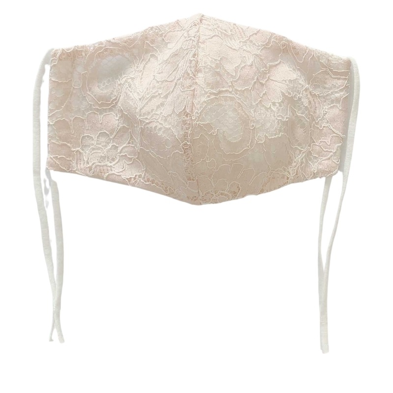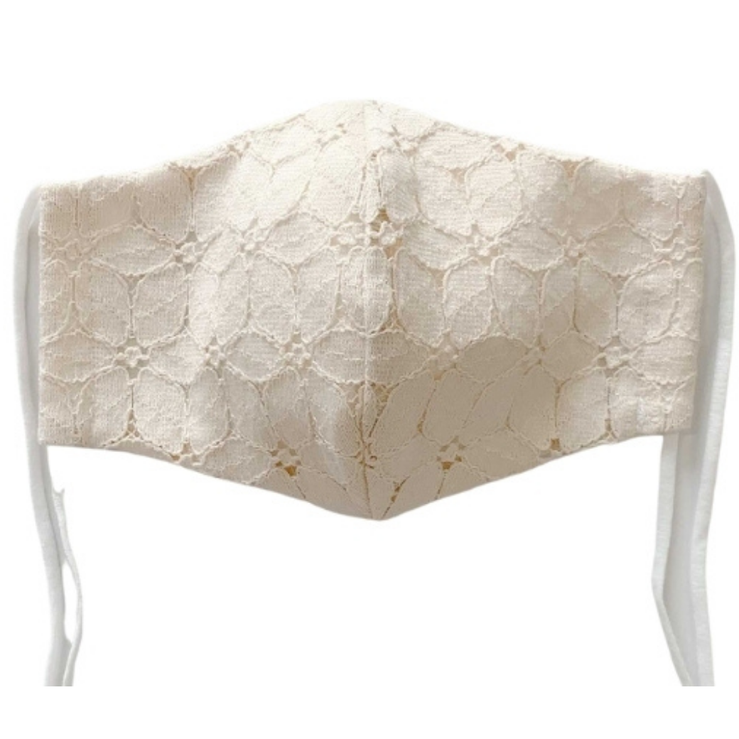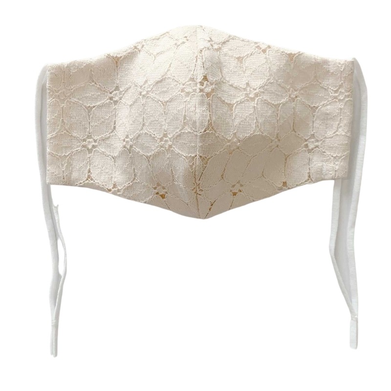 柔らかなクリームベージュ色で、お花の模様のレースは落ち着いた中に可愛らしさのあるマスクです