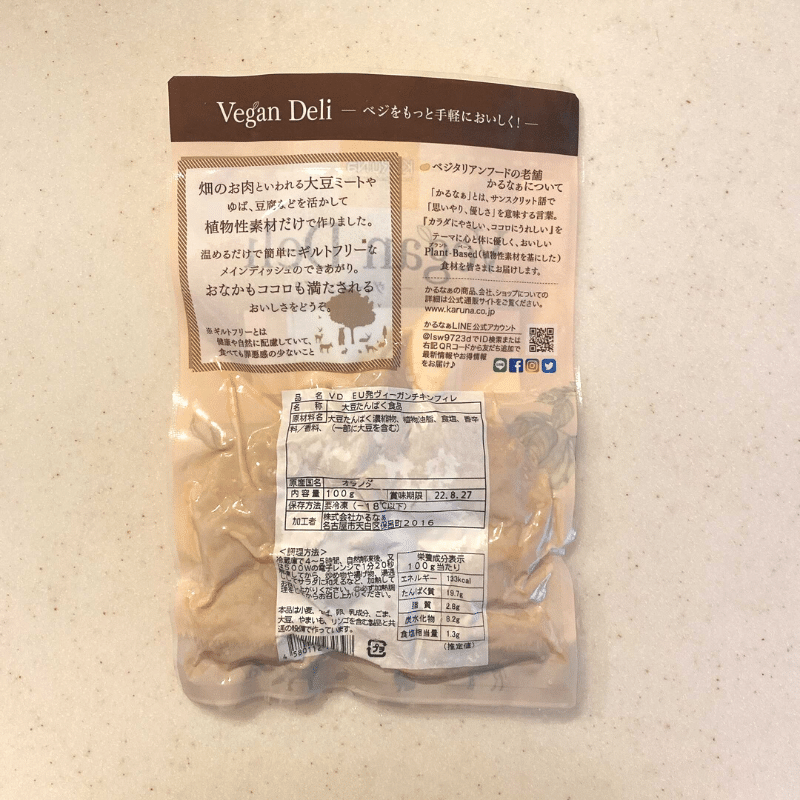 オランダで生まれた鶏ササミ風の冷凍大豆ミートです。