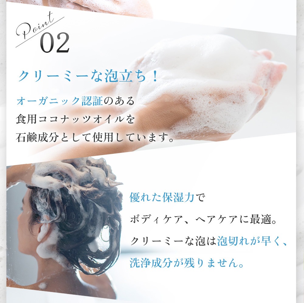 植物由来の脂肪酸なので、さっぱりつるっとした洗い上がり。