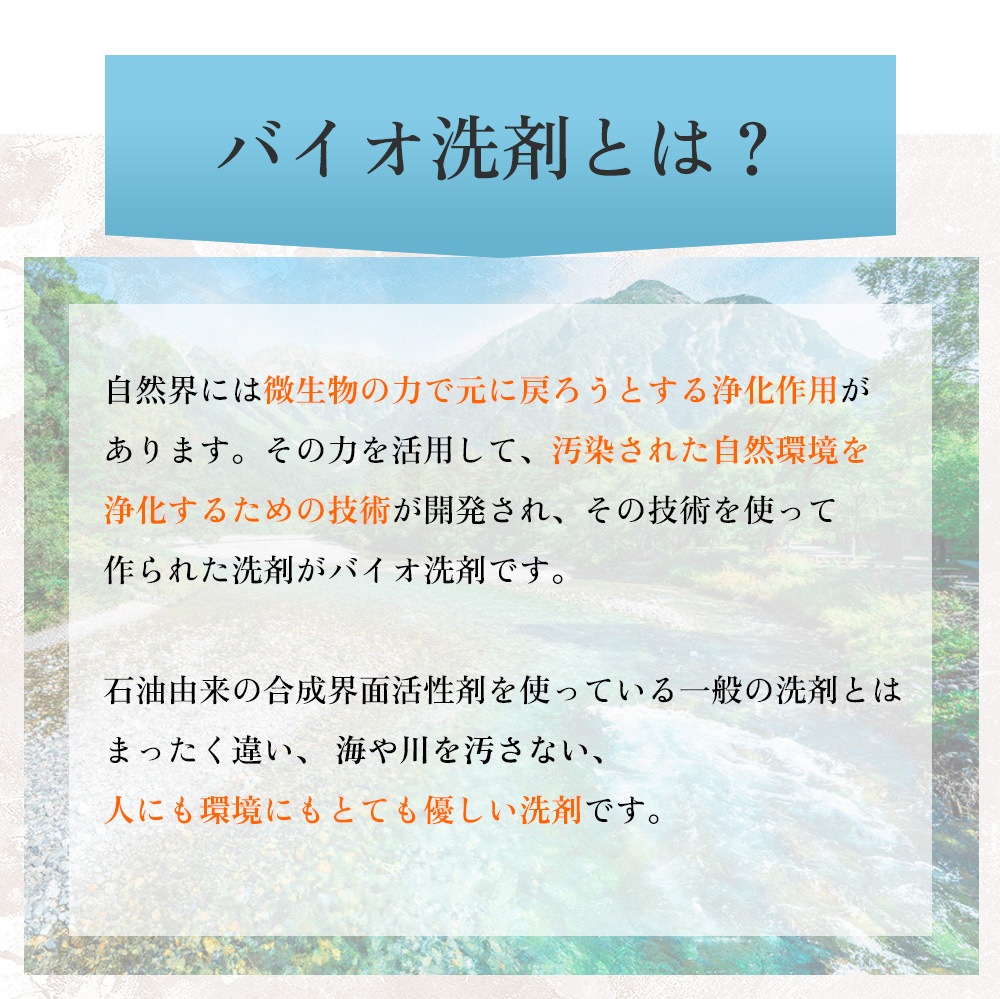 その力を活用して、汚染された自然環境を浄化するための技術が開発され、その技術を使って作られた洗剤がバイオ洗剤です。
