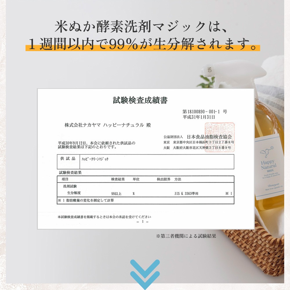 ハッピークリーンマジックは、米ぬか・小麦ふすま・有益微生物の水溶液とオーガニックココナッツ油や、ヤシカリ石鹸を合わせて作ったハッピーナチュラル独自のバイオ洗剤です。