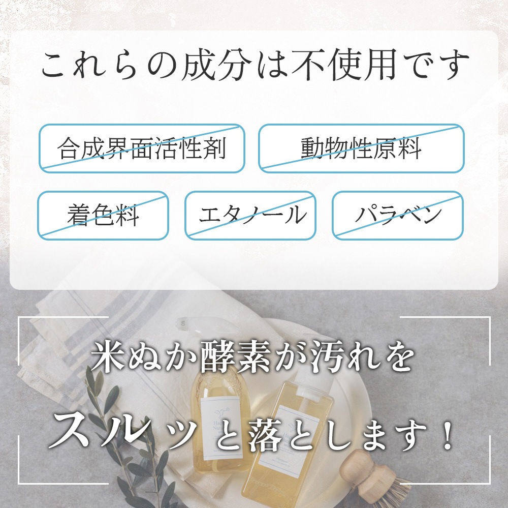 用途は食器洗いだけじゃなく、お風呂・トイレ・床掃除にと家中のあらゆる場所のお掃除にお使いいただけます。 合成界面活性剤・着色料・動物性原料・エタノール・パラベン不使用です。