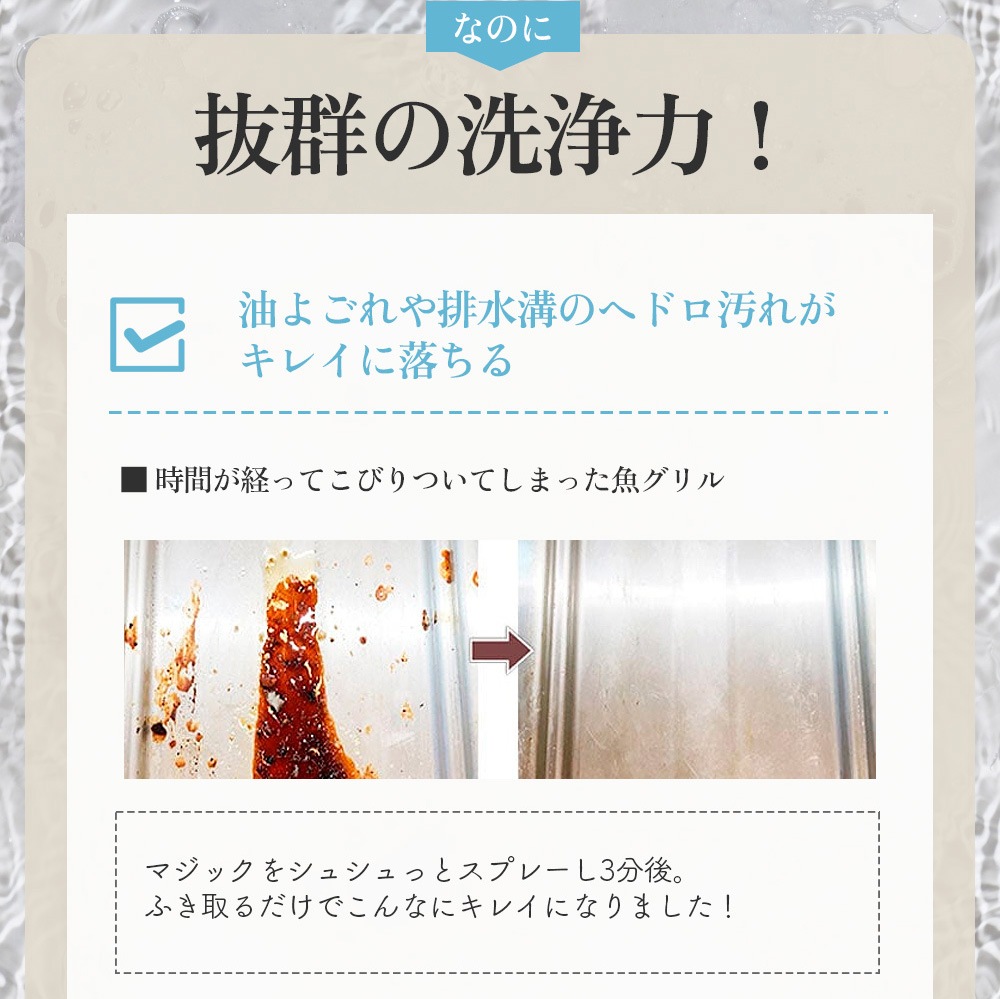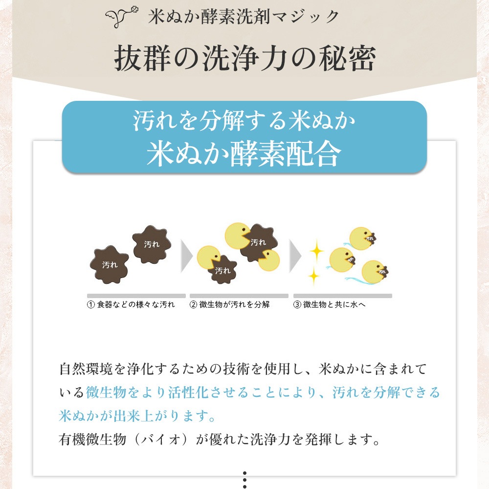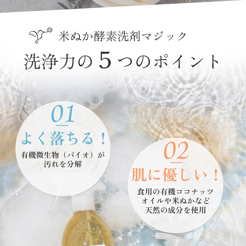 有機微生物が汚れを優しく引き剝がし分解してしっかりと洗浄するため、特に油汚れをキレイにする効果があります。