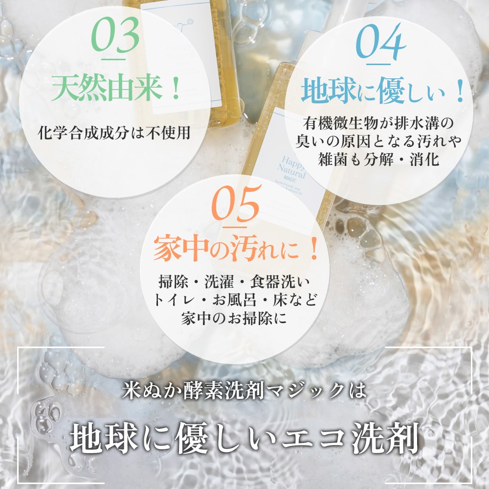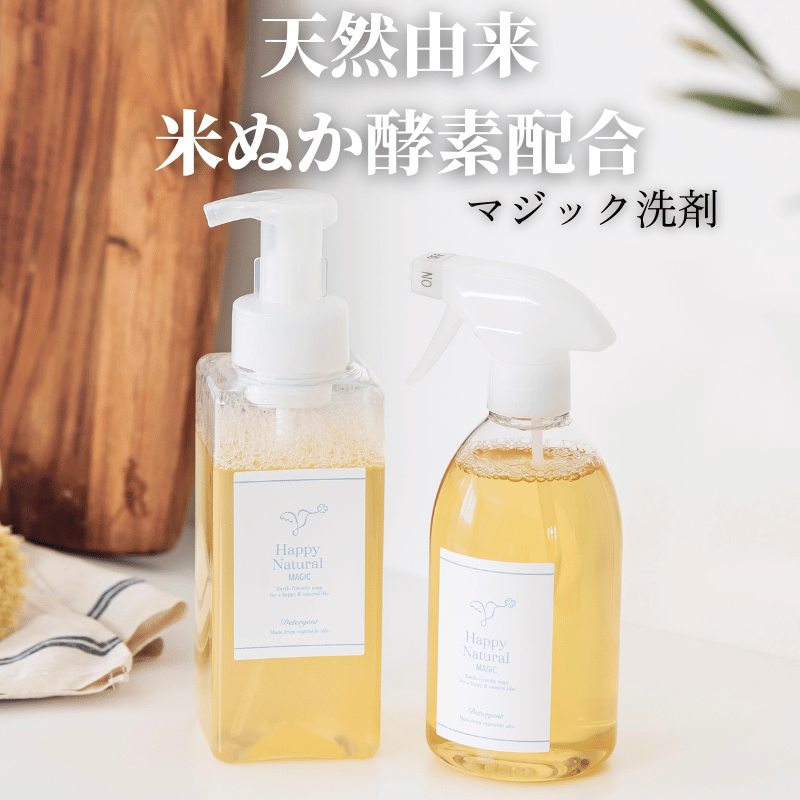 ハッピークリーンマジックはお肌にも環境にも家計にも優しい洗剤です。