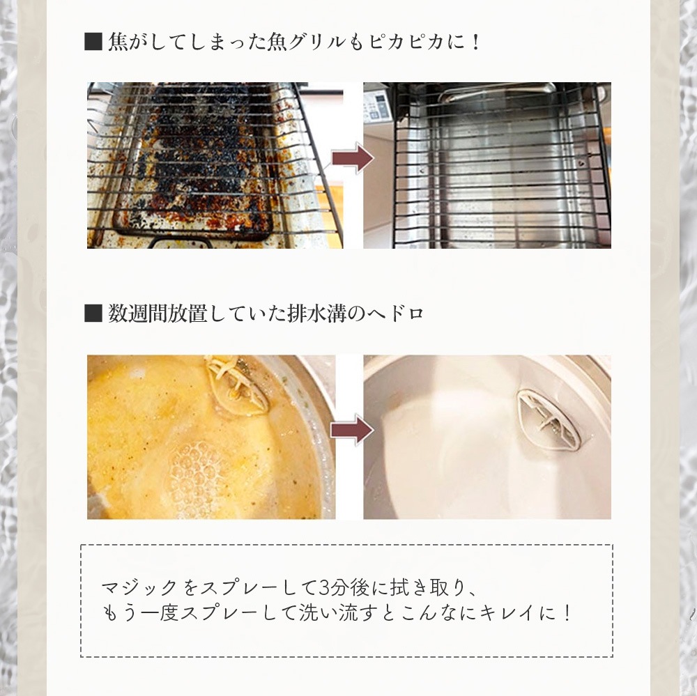 ハッピークリーンマジックをスプレーし3分後に水洗い。