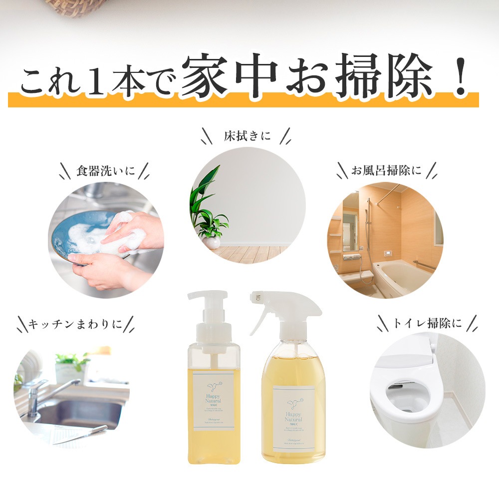 使いやすいスプレータイプの「ハッピークリーンマジック」と「ハッピークリーン」泡ボトルをセットにしてギフトボックスにしました。