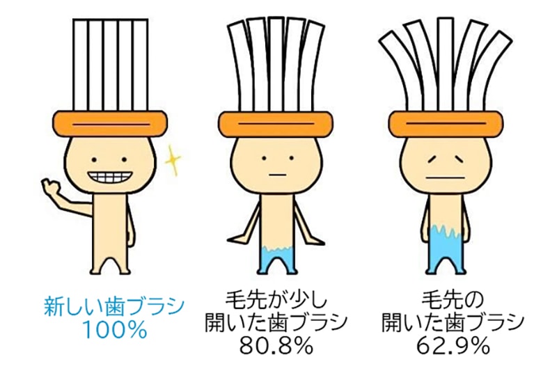毛先が開いた歯ブラシだと、100%磨いたつもりでも、実際は40%も磨ききれていないのです。