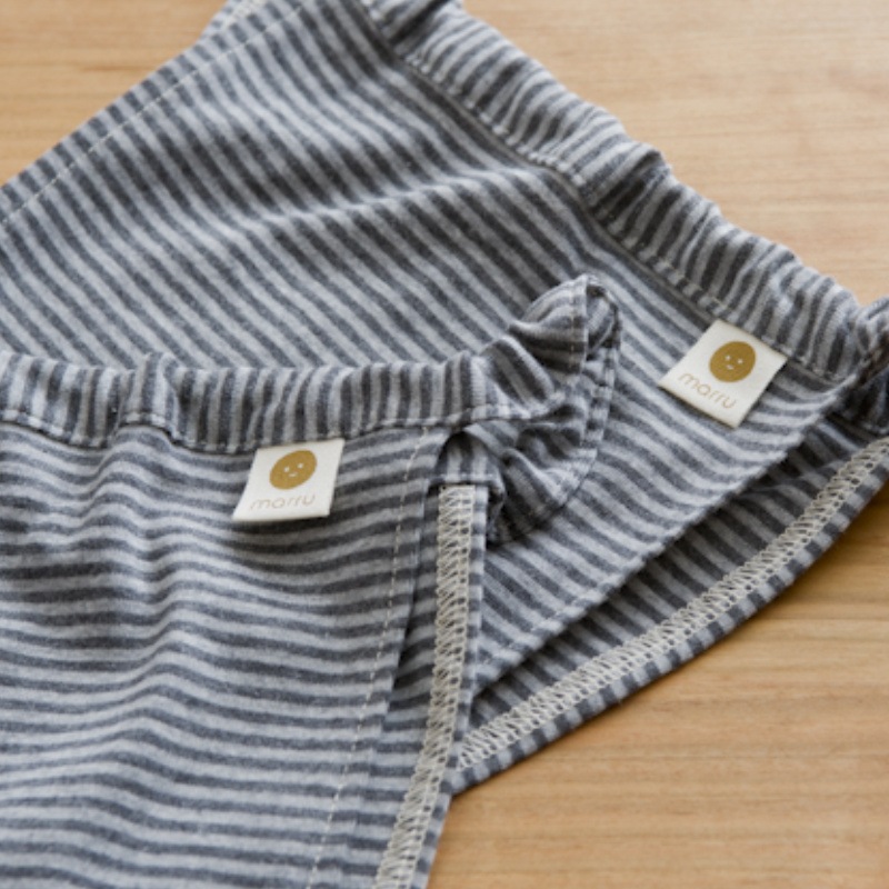 大人用満月パンツや新月ショーツと同様、股ぐりに一切ゴムを入れず、お腹周りのゴムもコットンで包んでいるので安心です。