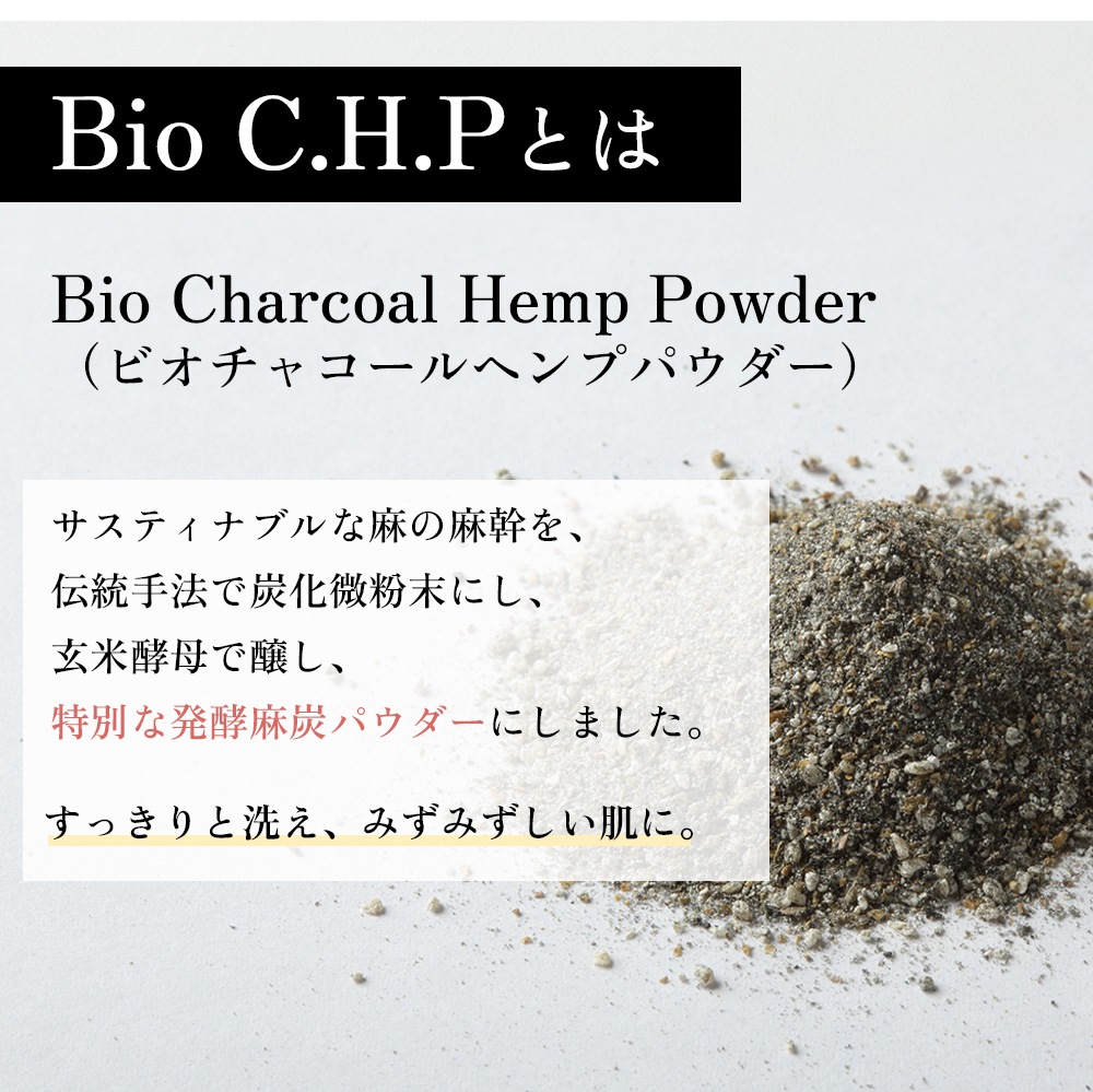 麻炭と玄米酵母の発酵炭パウダー「Bio C.H.P」※2を使用
