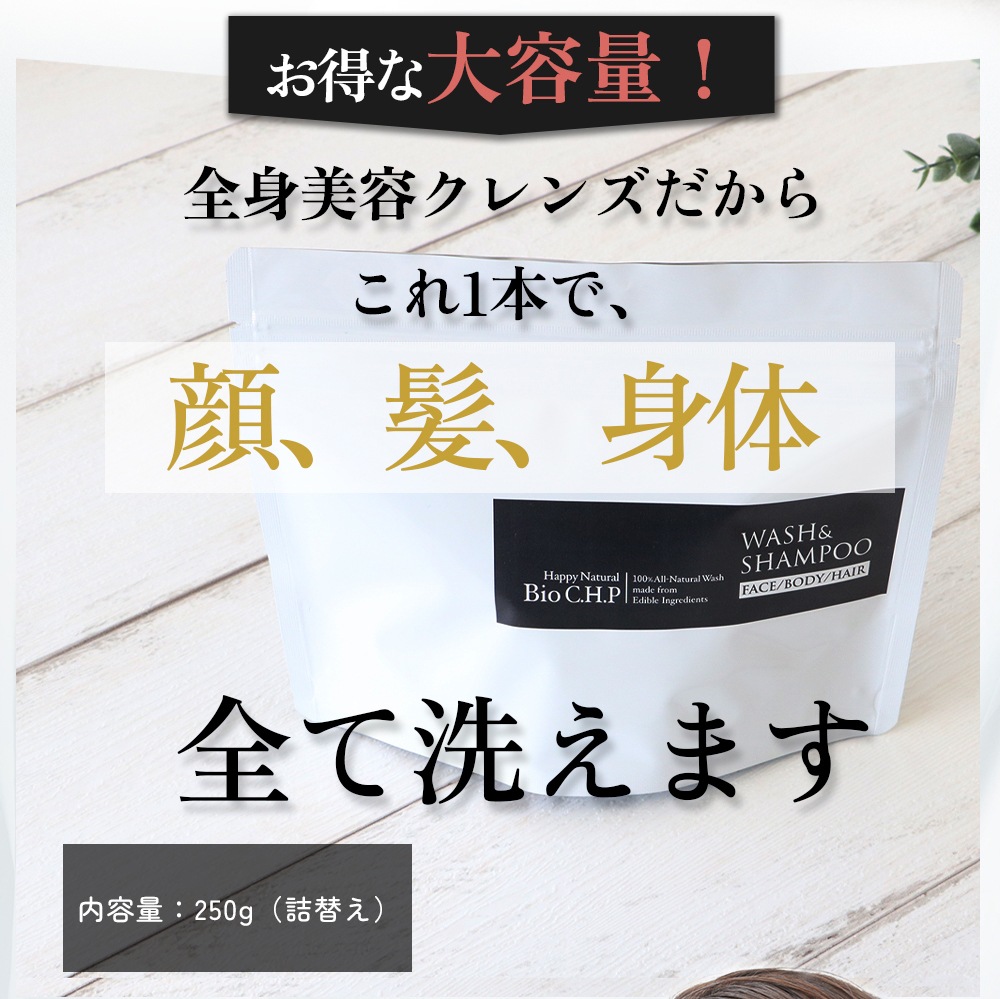 こちらはBio C.H.P WASH&SHAMPOO大容量(250g)です