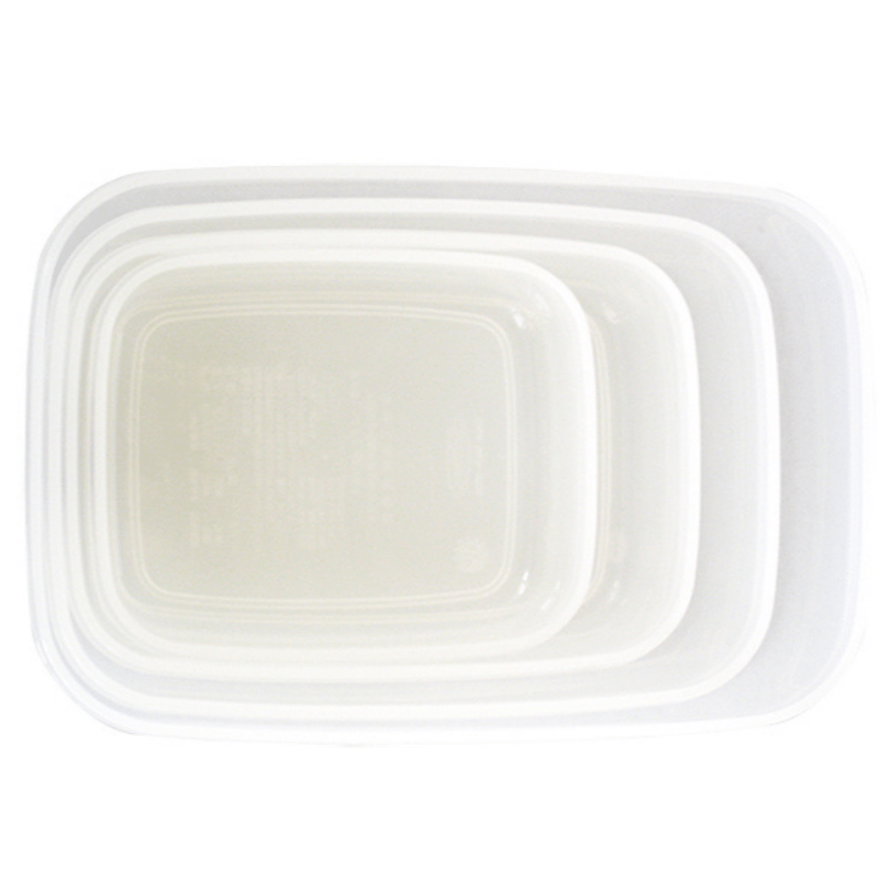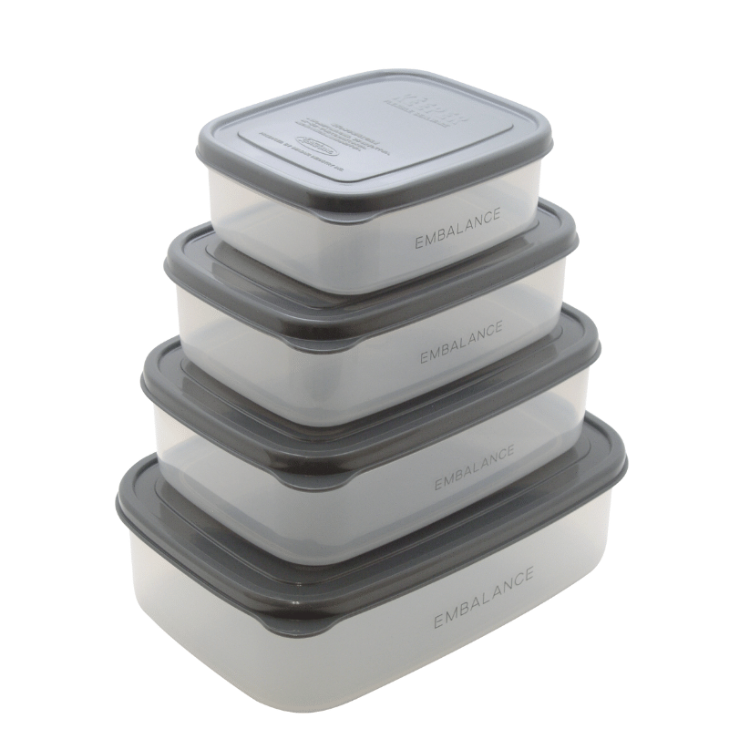 用途にわけて、小さいものから大きなものまですべてが使いやすく、ランチBOXとしても使えて、大き目のものも冷蔵庫に収まりやすい厚みで重ねて使っていますよ。