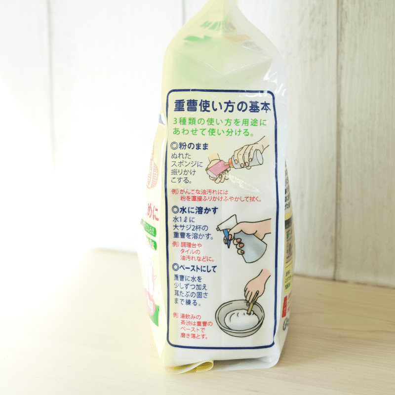 研磨作用や中和作用、軟水作用、消臭・吸湿作用、発泡・膨張作用など様々な作用を持っているため、お風呂やシンクの掃除、入浴剤、お掃除の洗剤、消臭剤にご利用いただけます。