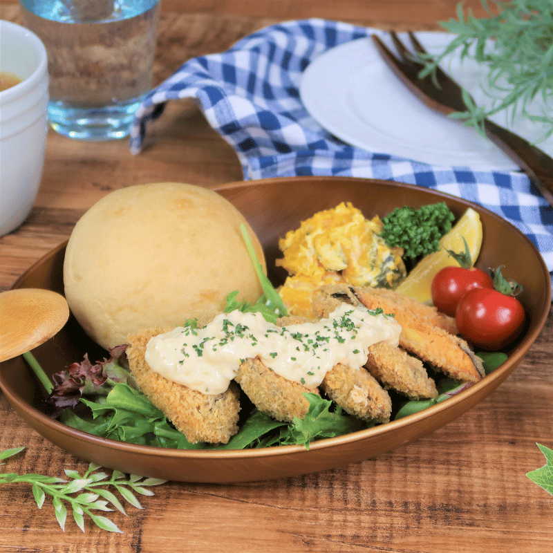 ランチプレートにしたり、カットされたサイズのフライなので、お弁当にも最適です。