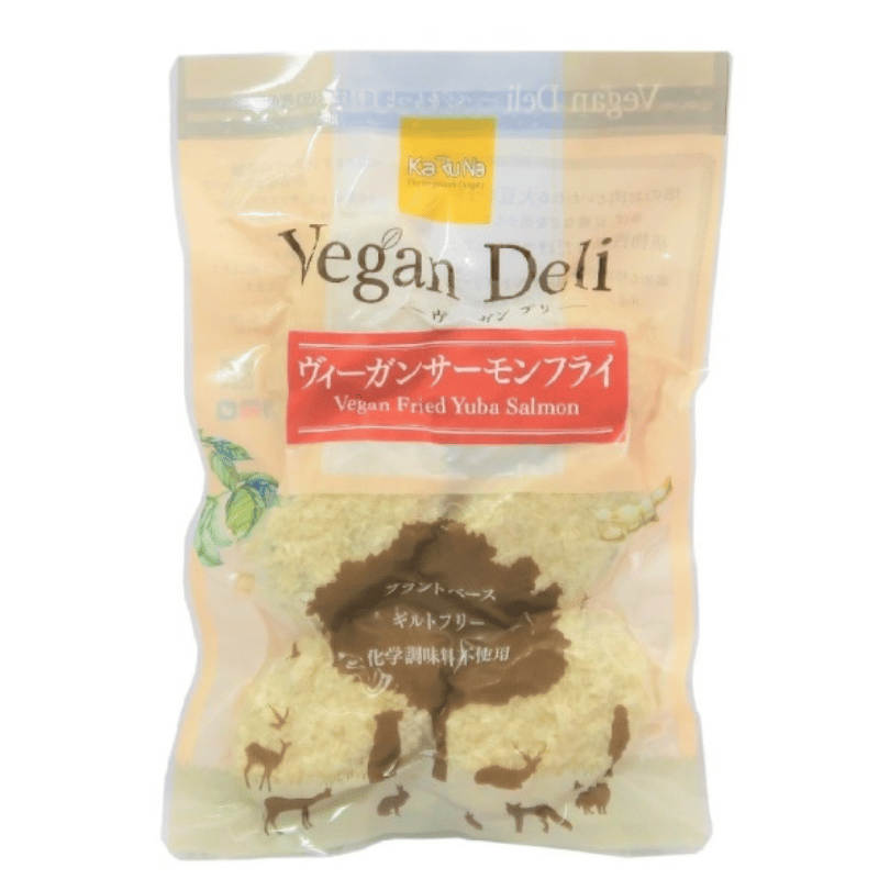 ヴィーガンサーモンフライ!ゆばで作ったサーモンフライ風の商品です。