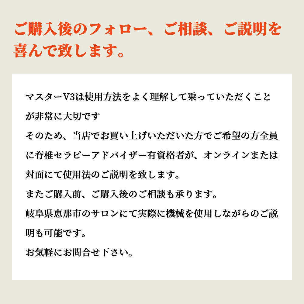 マスターV4は使用方法をよく理解して乗っていただくことが非常に大切です