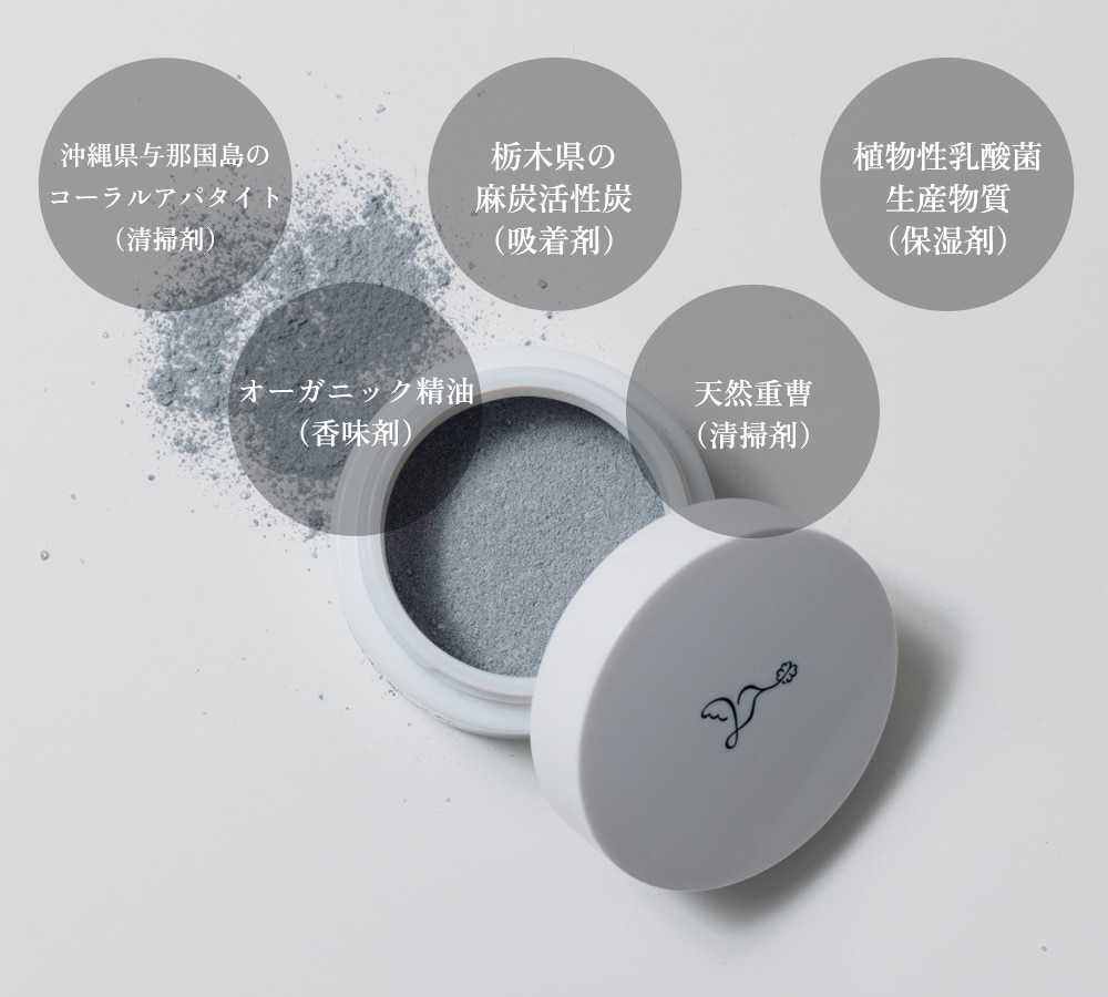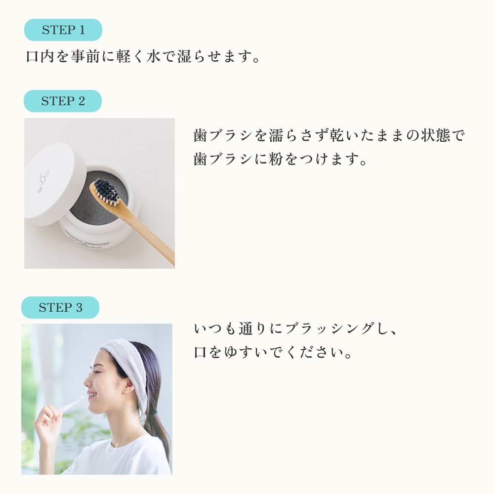 不必要な成分を除き、本当に歯に良い歯磨き粉を求めた結果、粉末状が最適でした。 有効成分のみで製造したいという思いから、ペースト状歯磨きに必要な水や粘着剤を使用していません。