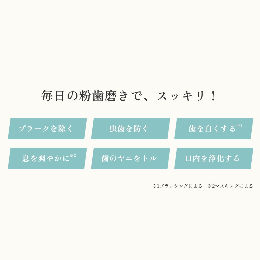 コーラルアパタイトは、落ちにくい歯石や歯垢に対し優れた吸着力があり、プラークを吸着して歯の汚れを落とすことが分かっています。 お茶や珈琲、ヤニなどによる歯の色素汚れを吸着するため、美白効果※があり、歯の表面の細かな傷にもしっかり入り込んで汚れを落とします。 歯の汚れを取り除き、虫歯を予防します※