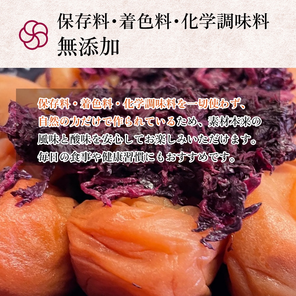 保存料・着色料・化学調味料無添加のしそ仕込み梅干