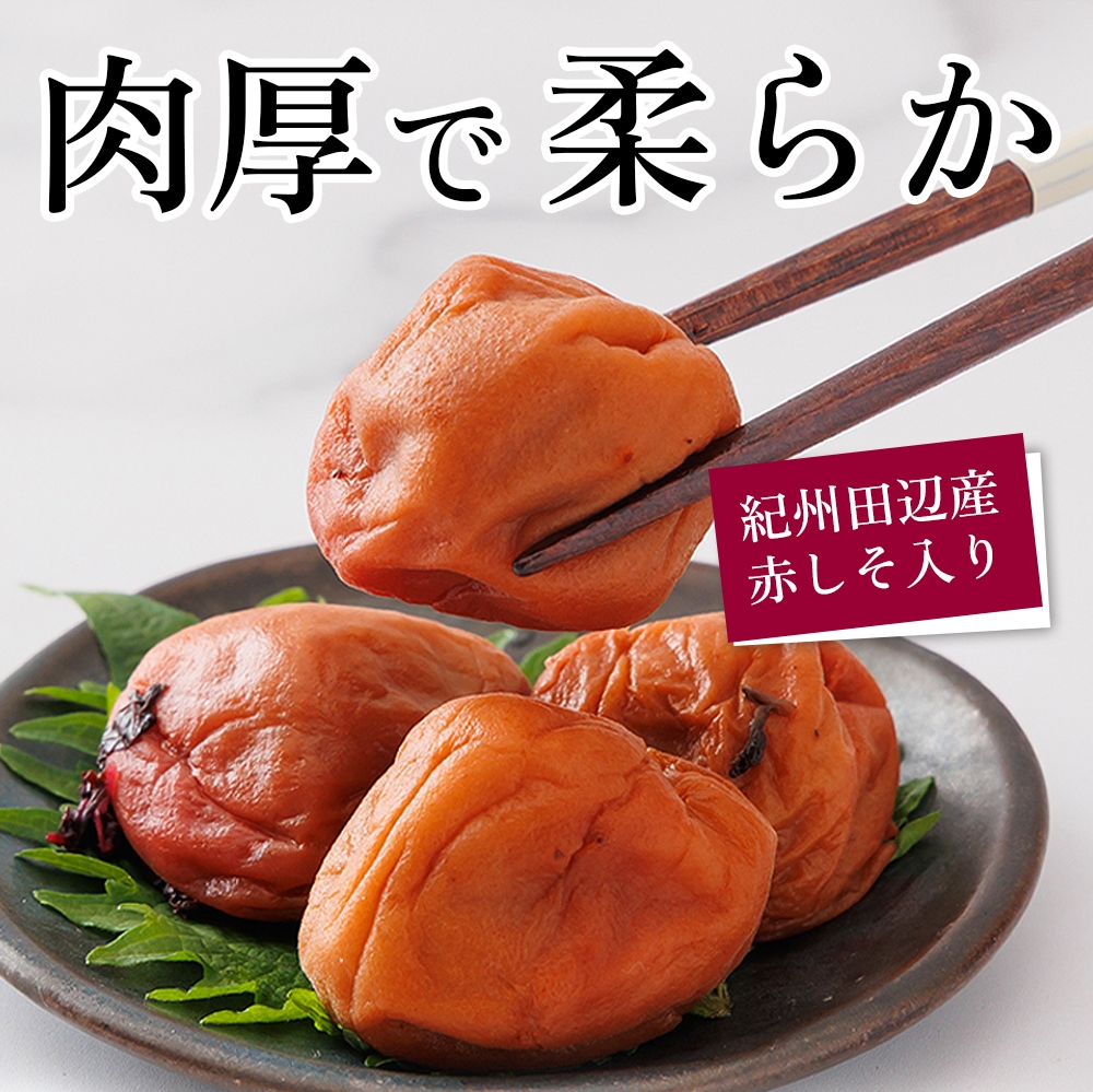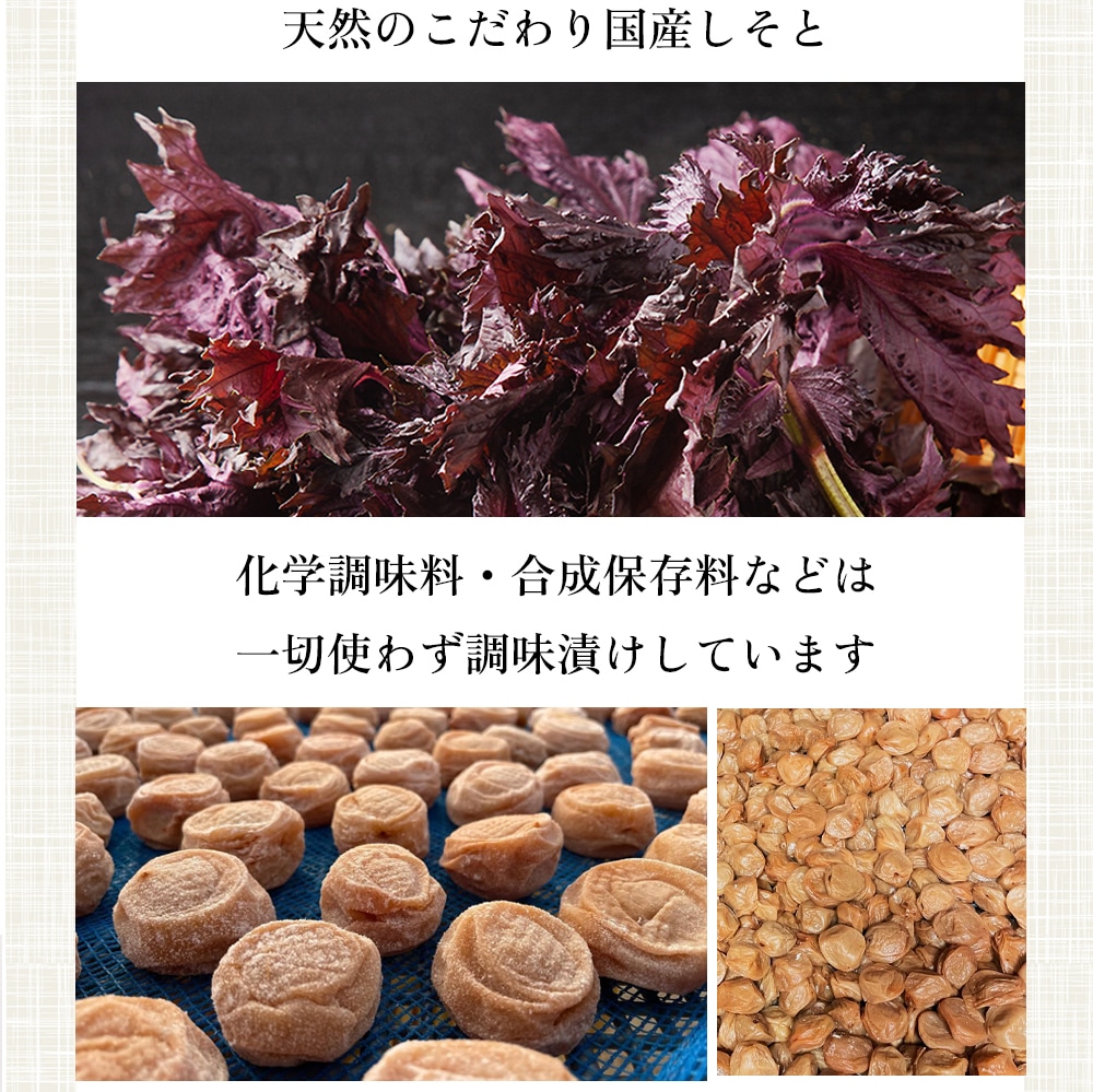 地元で採れた紀州田辺産の天然赤しそを使用。しそのさっぱりとした味をお楽しみ下さい。