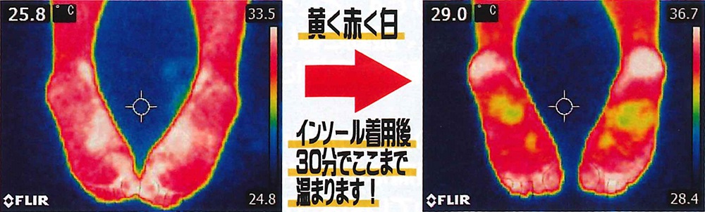体の温度の変化を色分けできる サーモグラフで見ると、こんな にも体温が上昇! 血行も良くなり、冷え性改善等に効果がみられます。