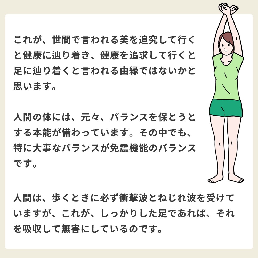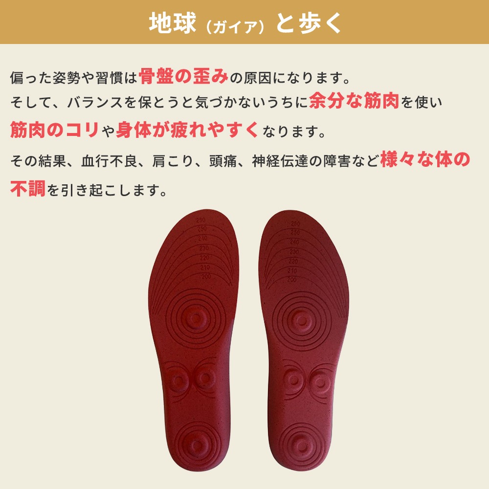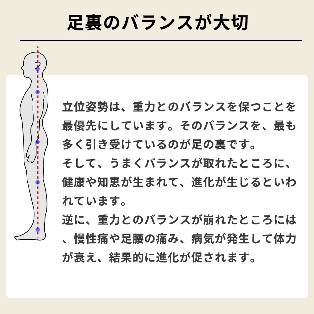 臨床34万人以上という現場で得た経験やデータに基づき、足元が人間の健康維持に欠かせない要因の一つであることを骨格、筋肉、神経反射などのあらゆる点から考え、開発されました。