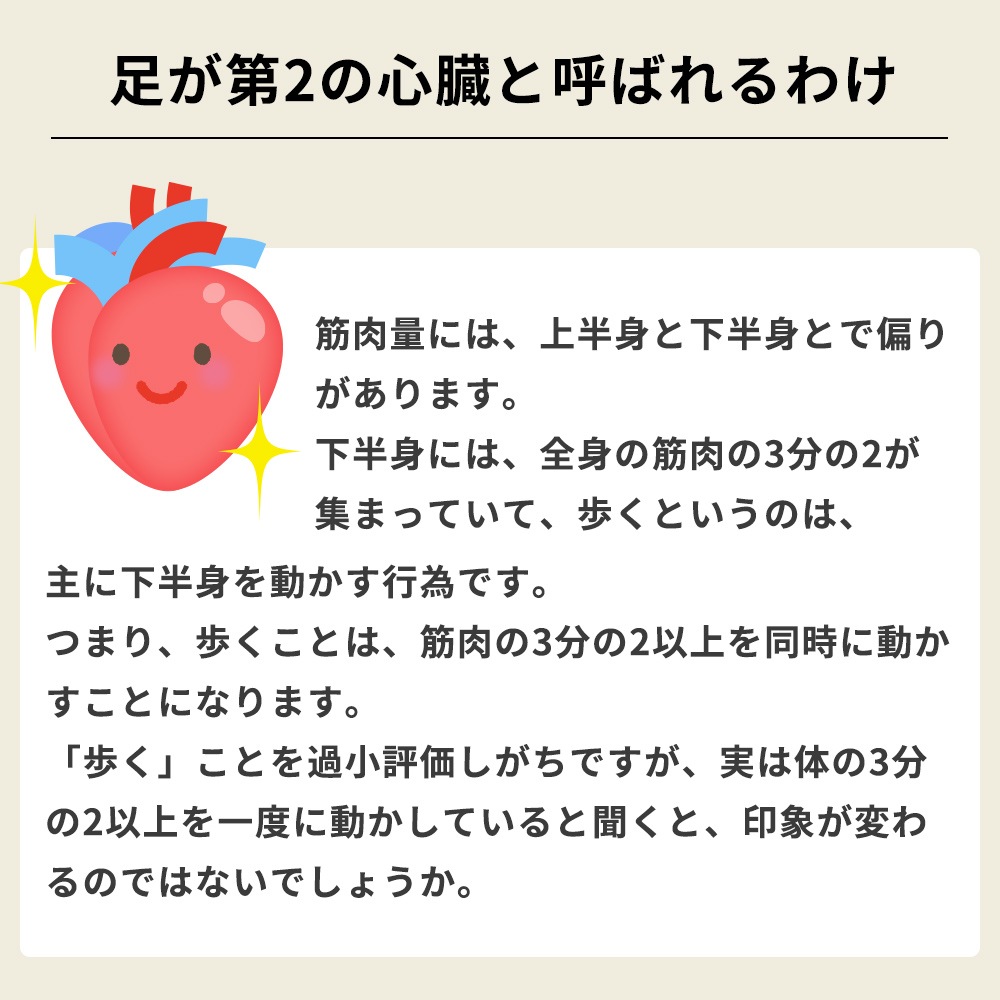 血液が心臓から足、 さらに足から心臓へと循環するたびに足の筋肉が働いているのです。