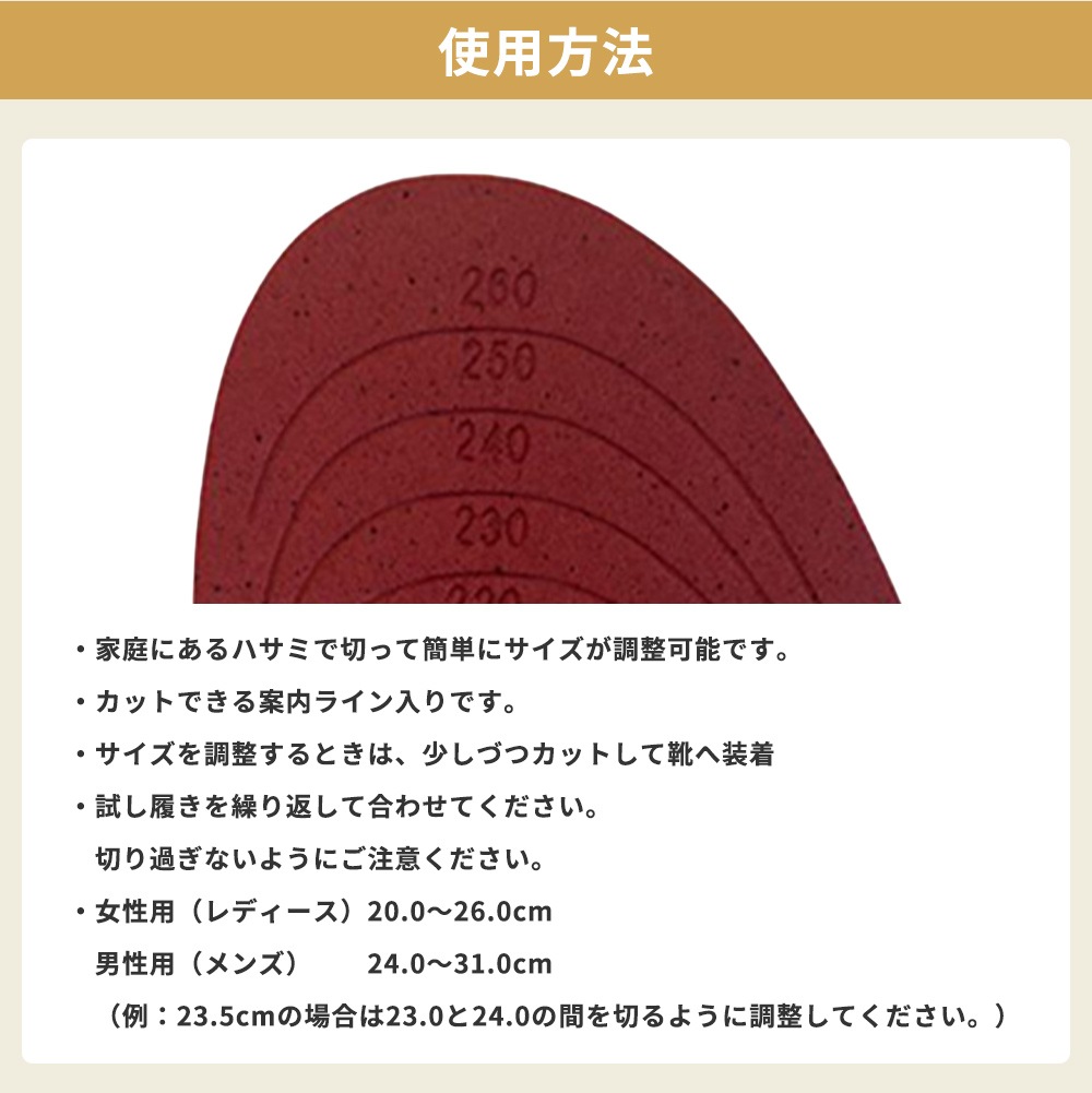 - サイズを調整するときは、少しづつカットして靴へ装着・試し履きを繰り返して合わせてください。