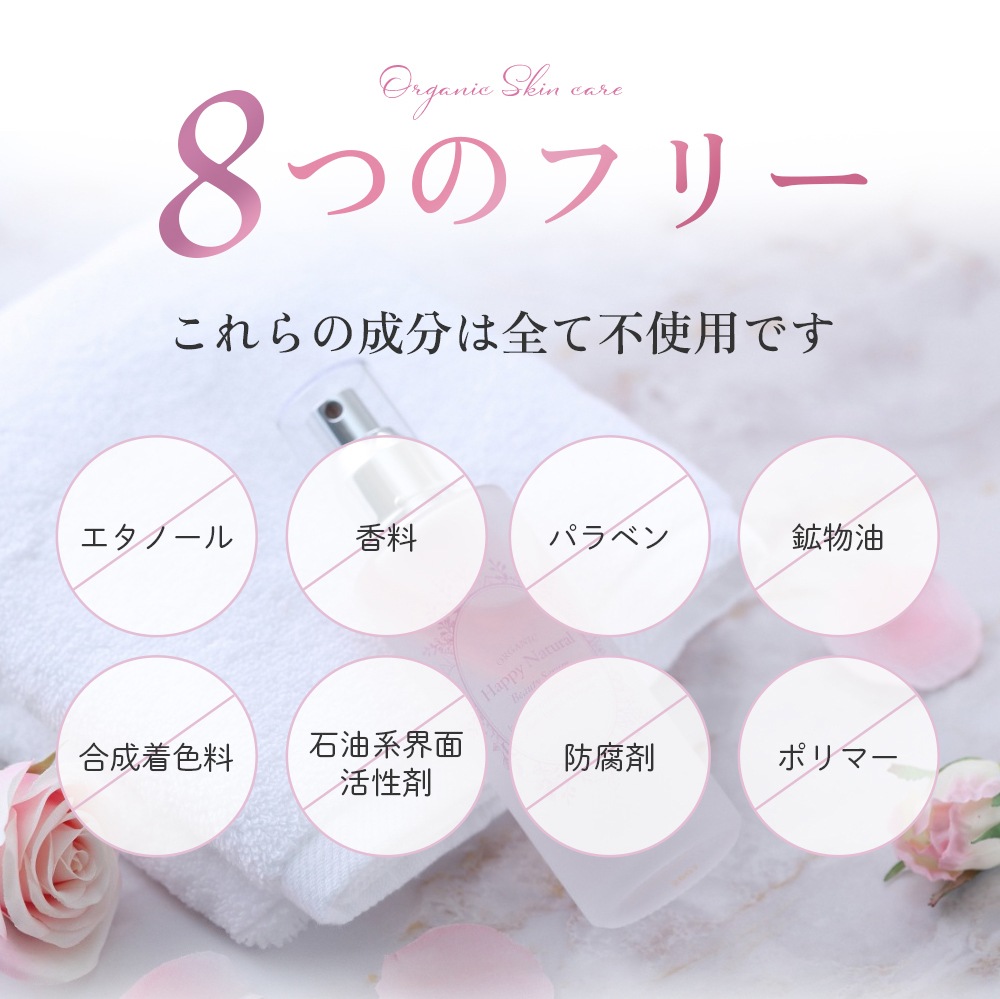 | エタノール | 香料 | パラベン | 鉱物油 |