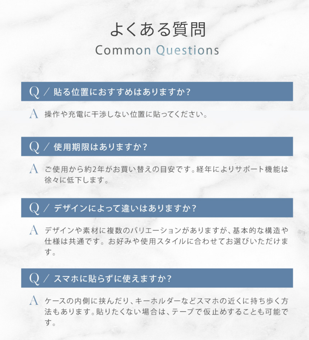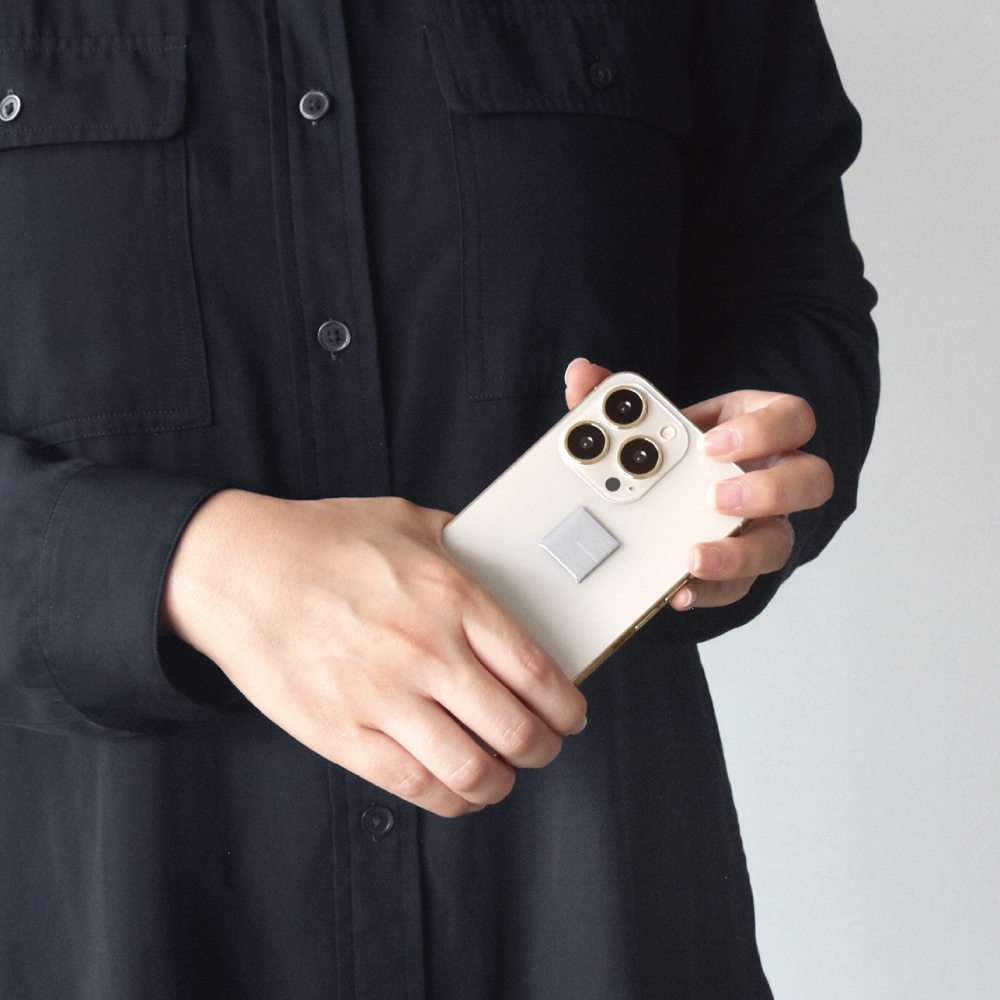 透明フィルムを外しスマートフォン本体またはケースの平らな面に貼り付けてください。