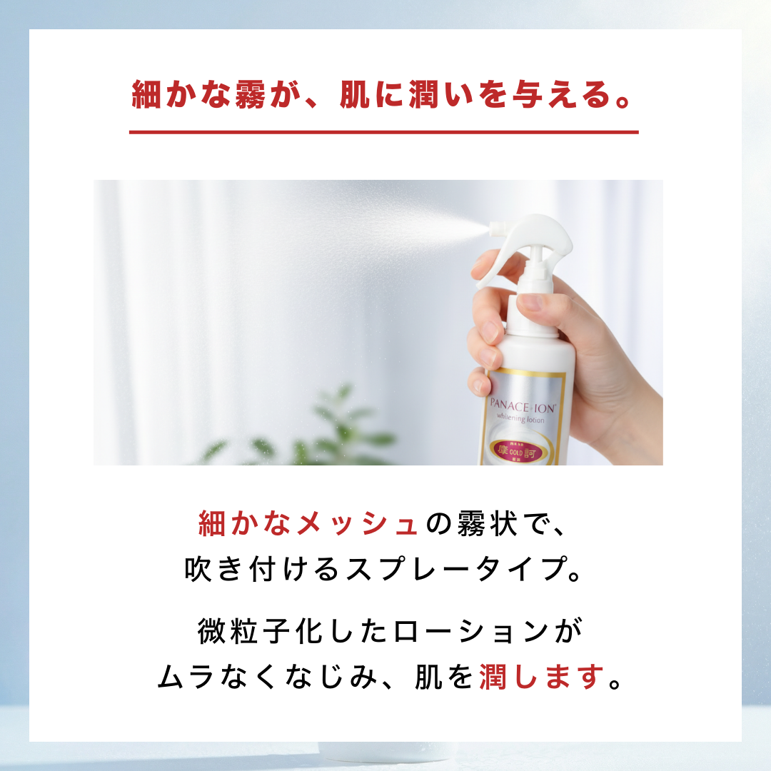 細かなメッシュの霧状で噴霧できるスプレータイプを採用しており、