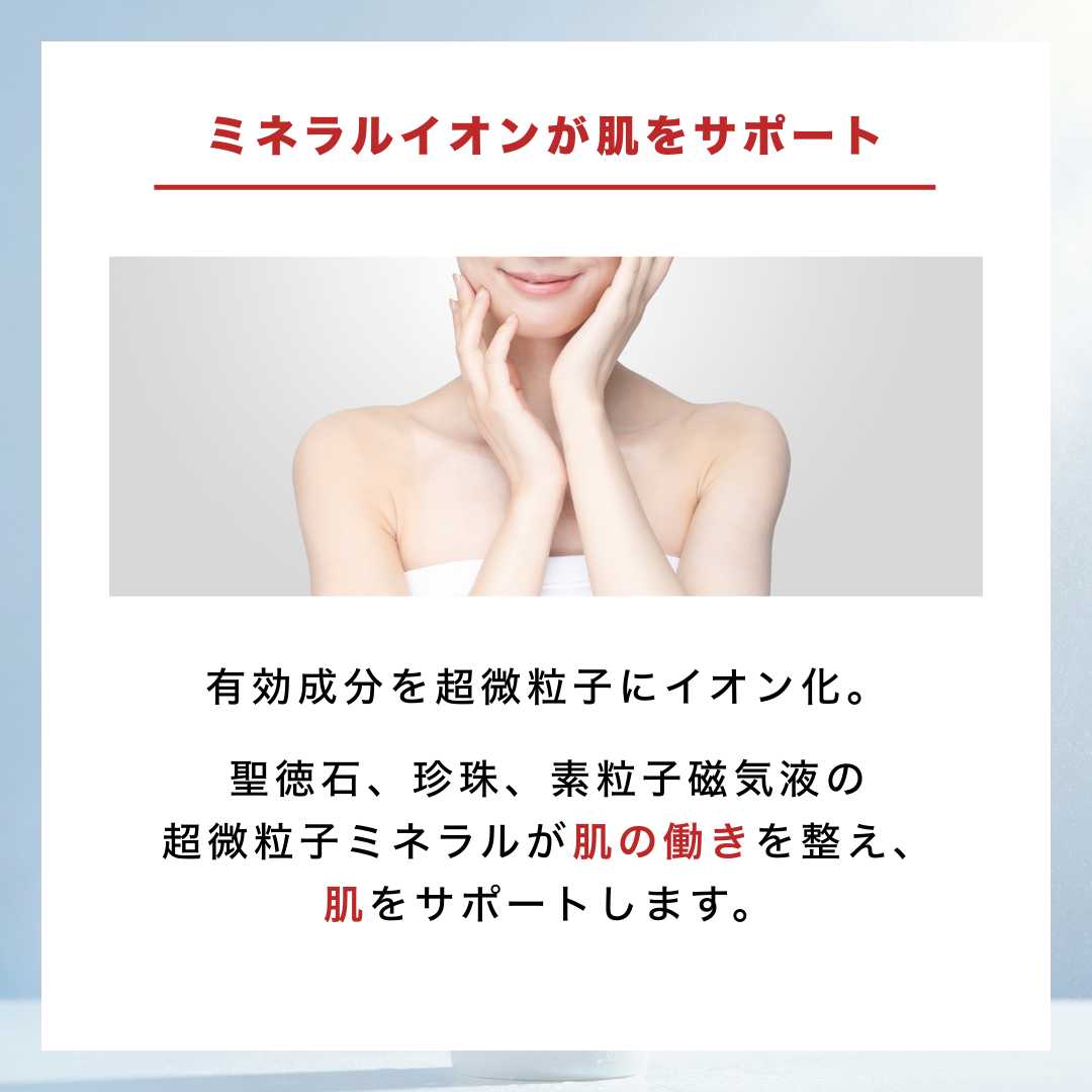 ミネラルイオンを肌から補給し、肌を潤し癒す