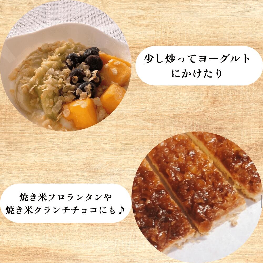 そのまま食べると食べ応えがあり、香ばしいく, スープなどに入れるとお米の栄養をそのままとれます。さらに、少量でも満腹感があるため、ダイエットにもおすすめ。