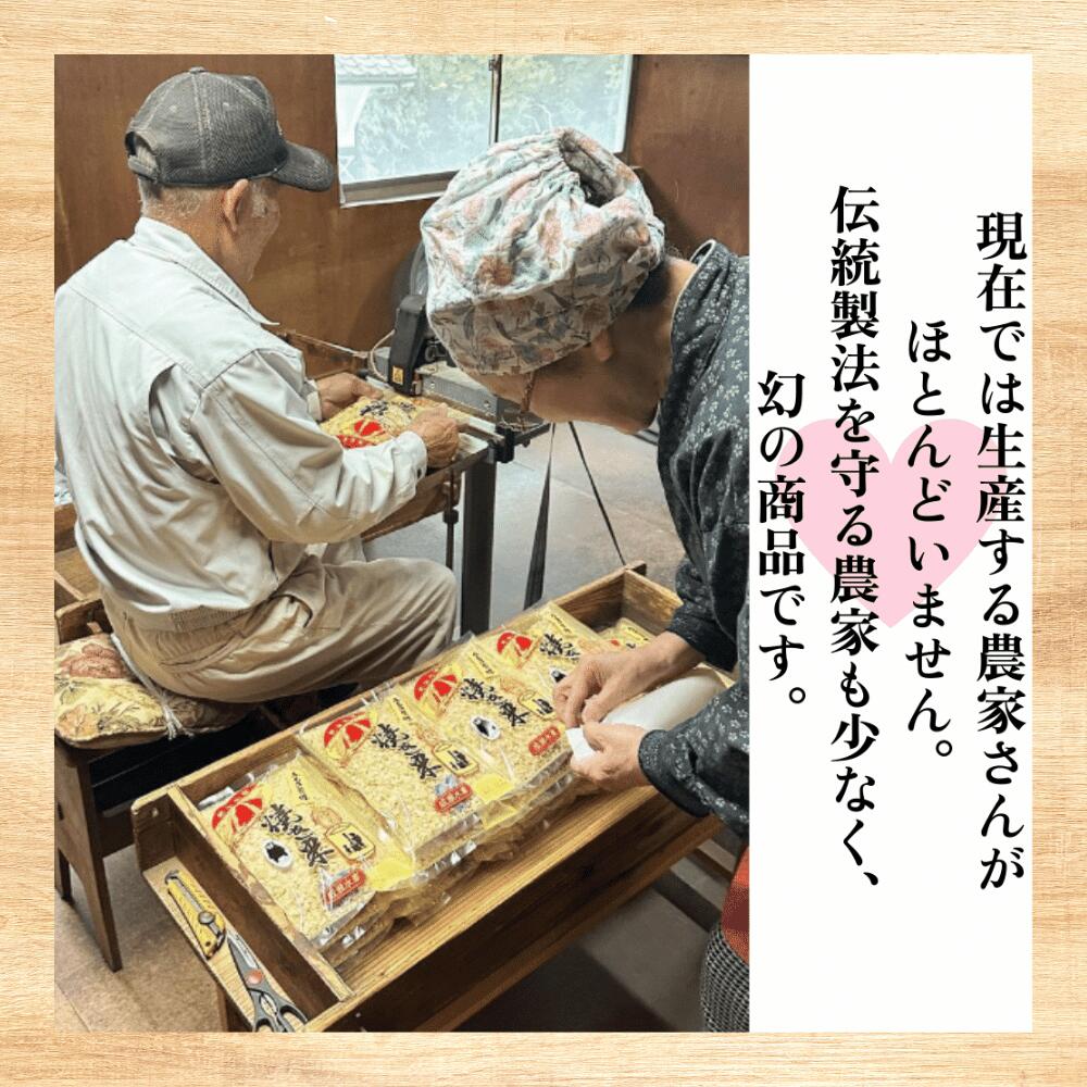 でも、現在では生産する農家さんがほとんどいない状況で伝統的製法を守る農家も少なく、 日本人でも、知らない人も多いといわれてる幻の商品です。